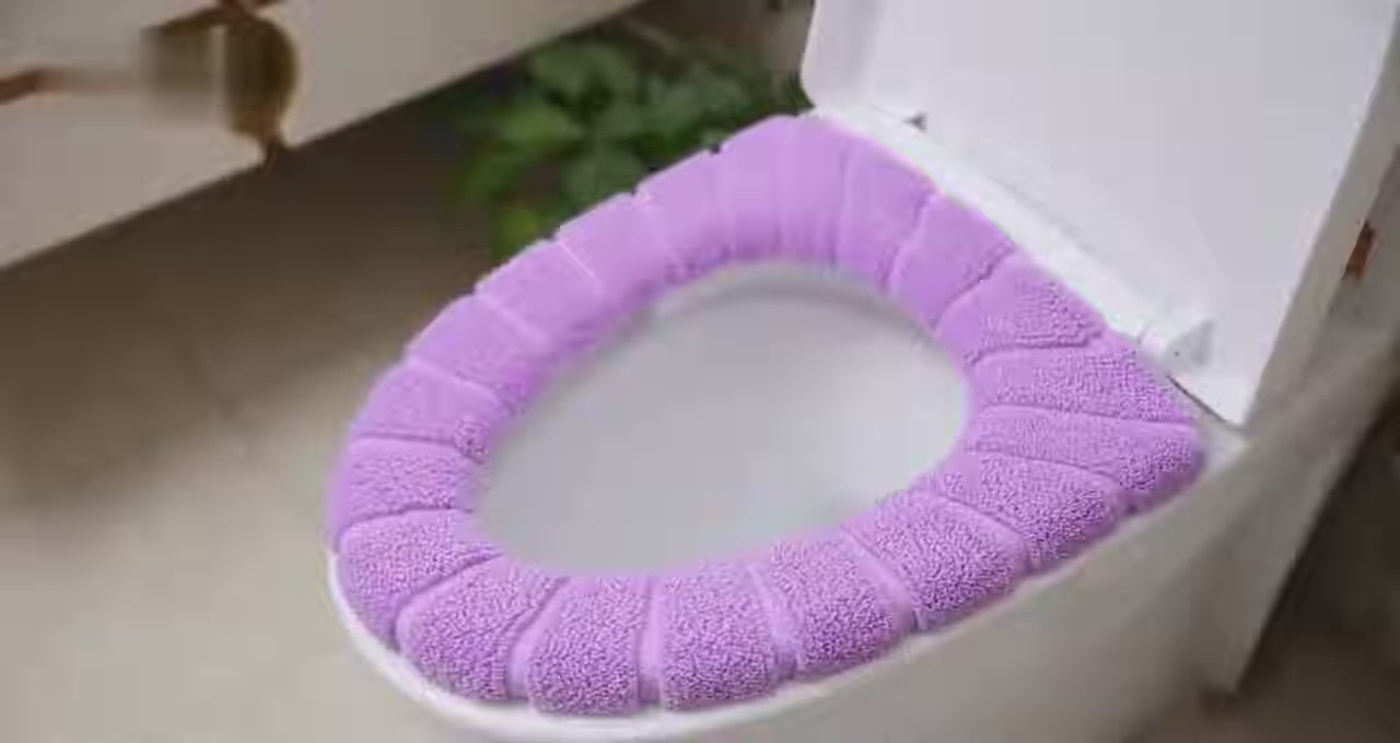 Universal Soft-Touch Cushioned Toilet Seat Cover – Machine Washable Plush Comfort ( Random Colors )